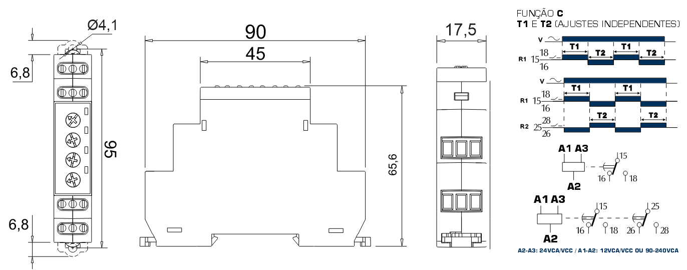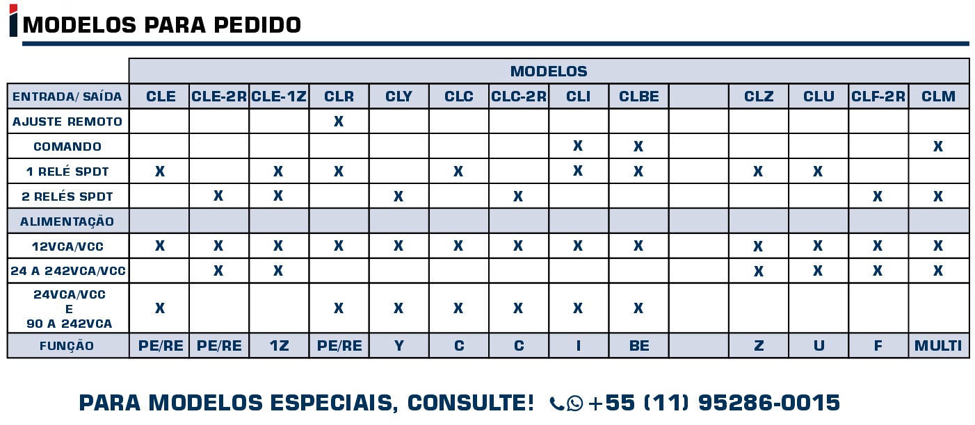 - Alimentação: 12 Vcc/Vca ou 24Vca/Vcc e 90 a 242 Vca