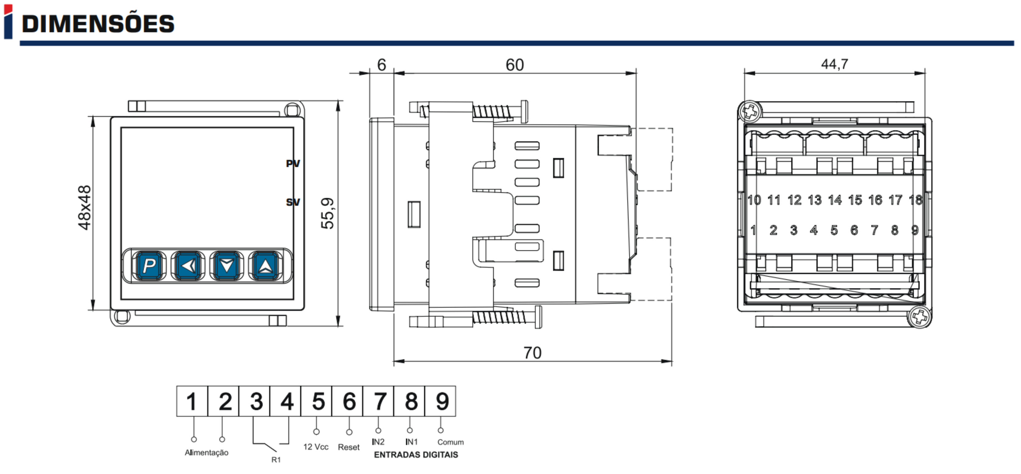 - Funções Contador e totalizador (configurável).