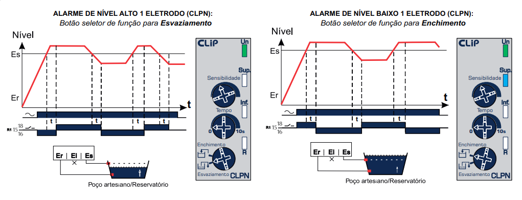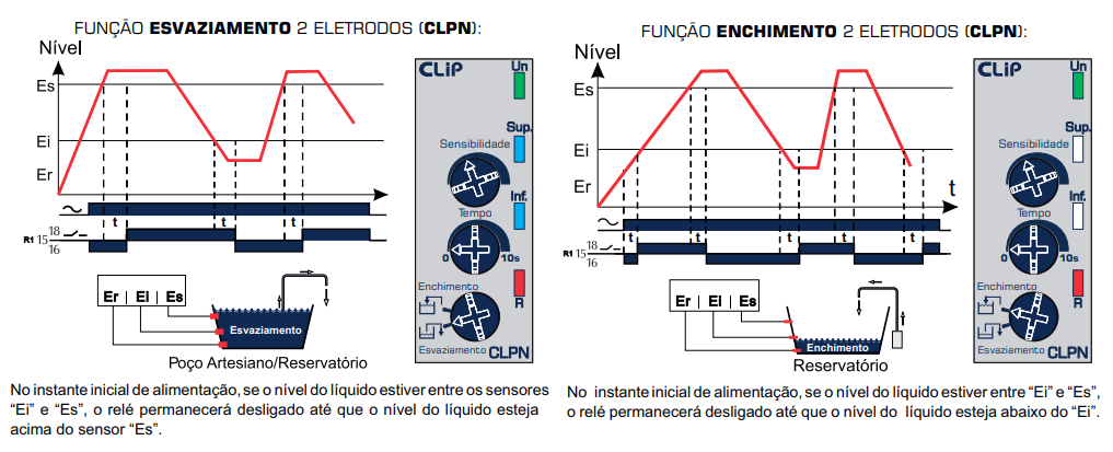 - Função nível máximo e mínimo (enchimento/ esvaziamento).