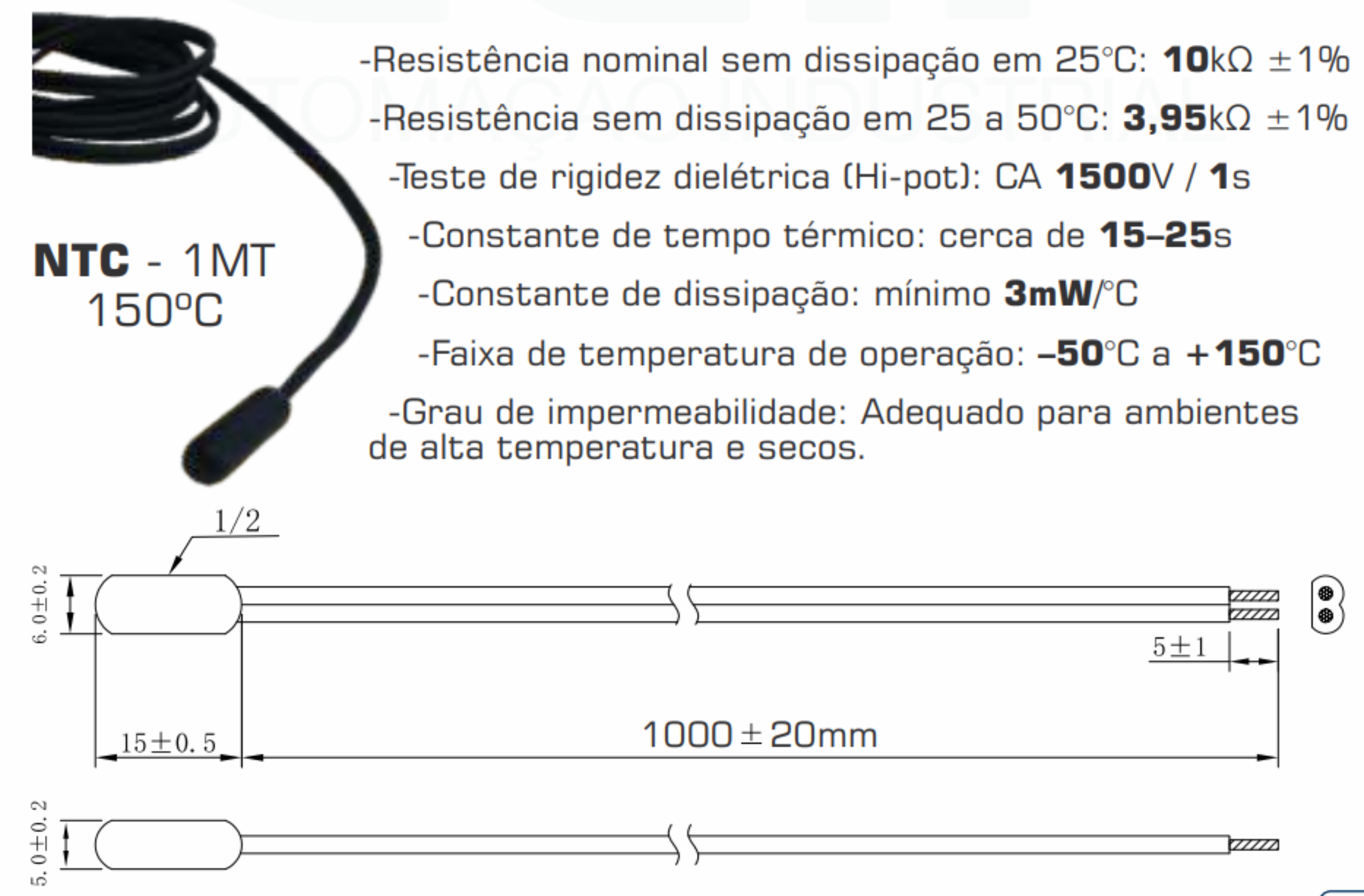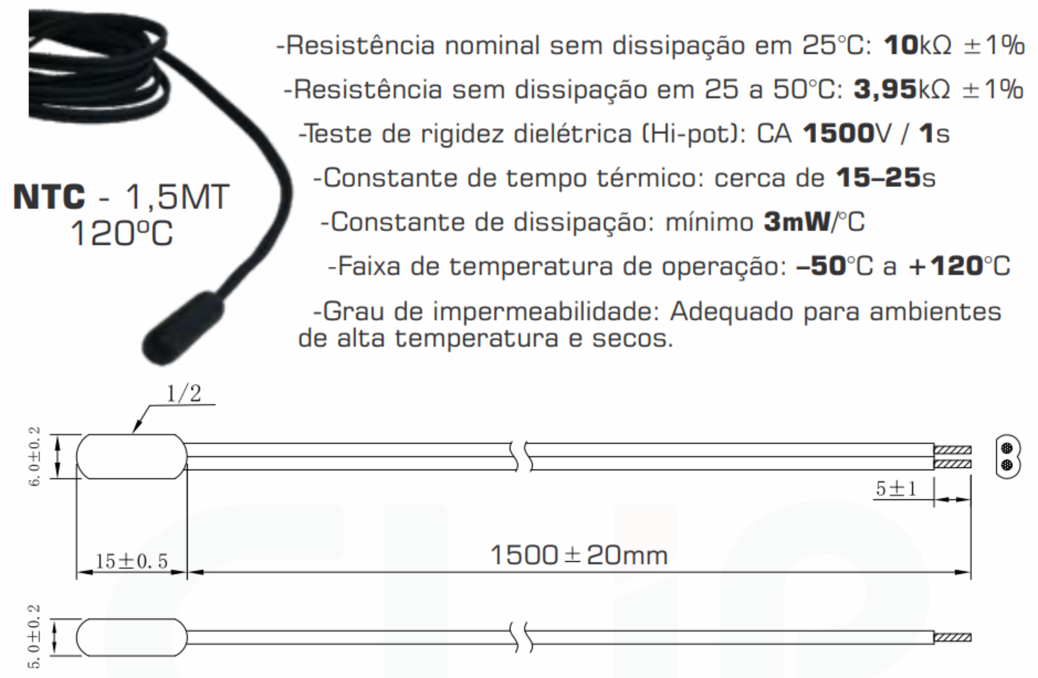 05120100007 - SENSOR TEMP. TIPO NTC TERM IP68 TMT-NT 150ºC 1MT