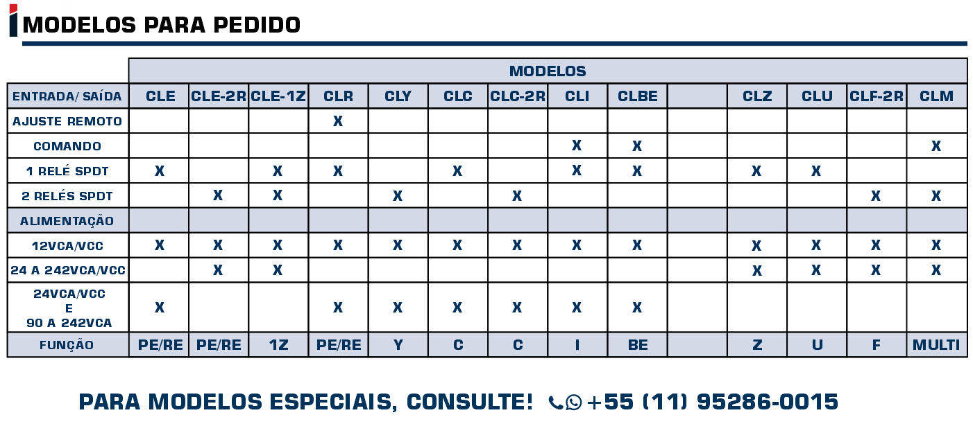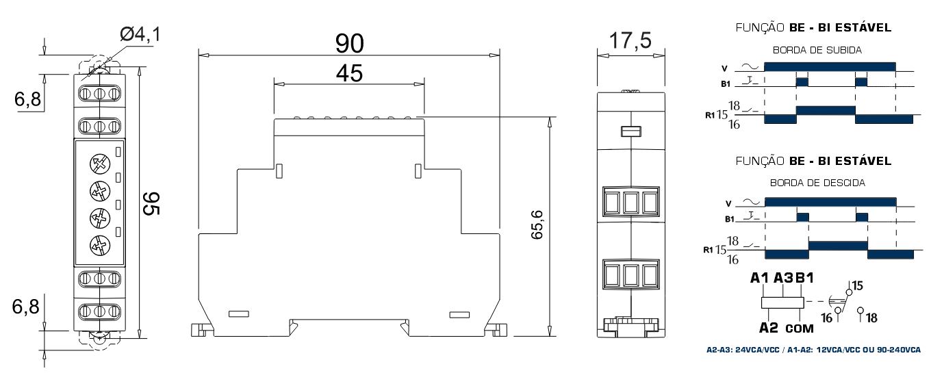 - Alimentação 12 Vcc/Vca ou 24 Vca/Vcc e 90 a 242 Vca.