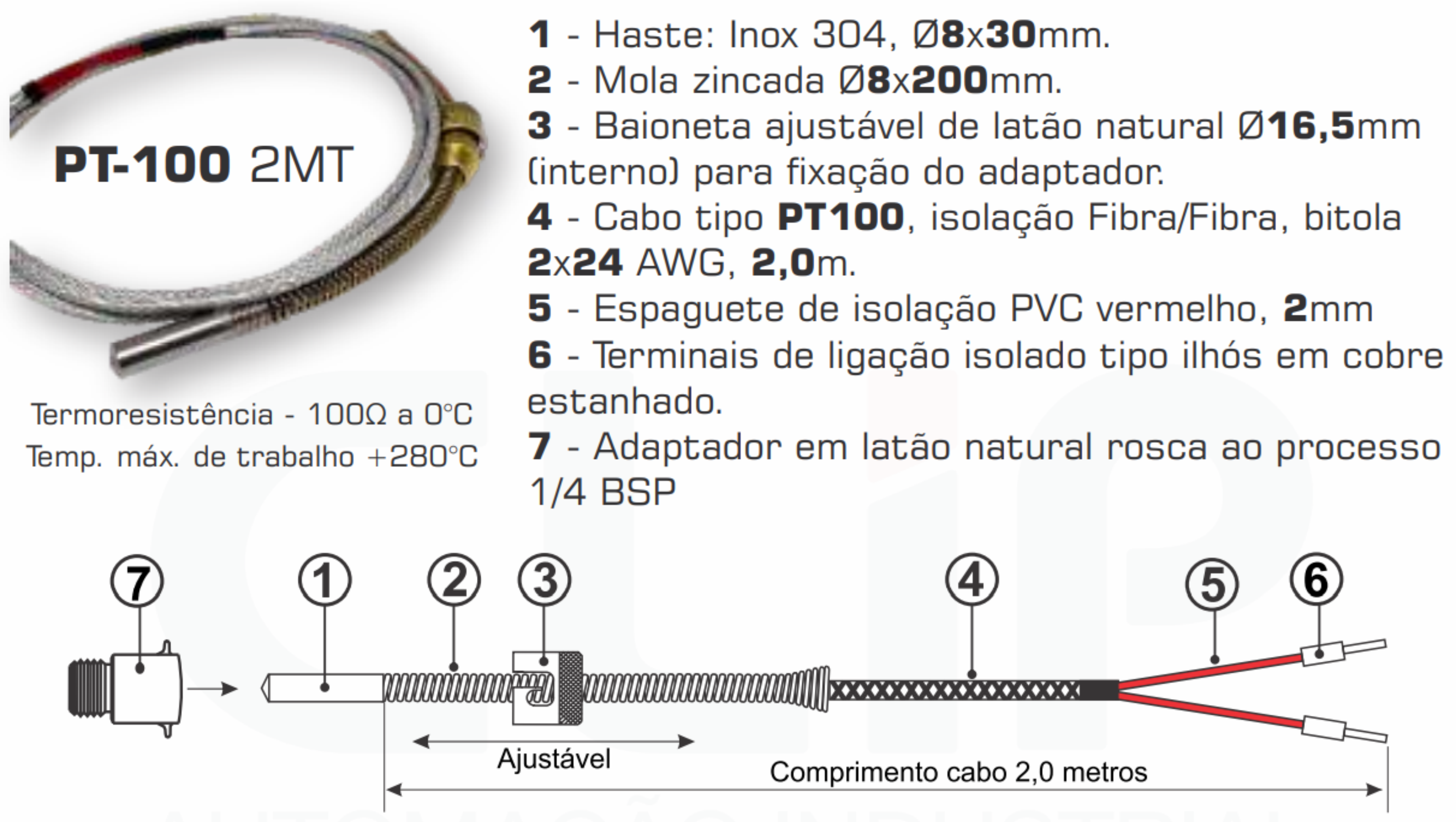 SENSOR DE TEMPERATURA TIPO PT-100 TMT PT 2MT